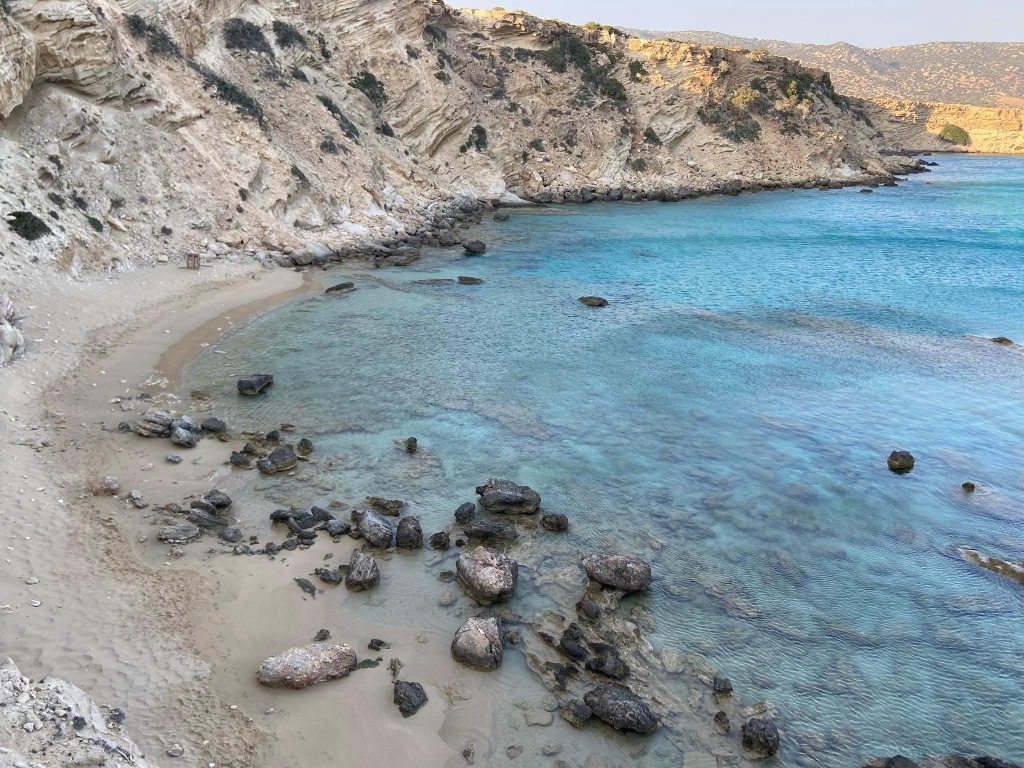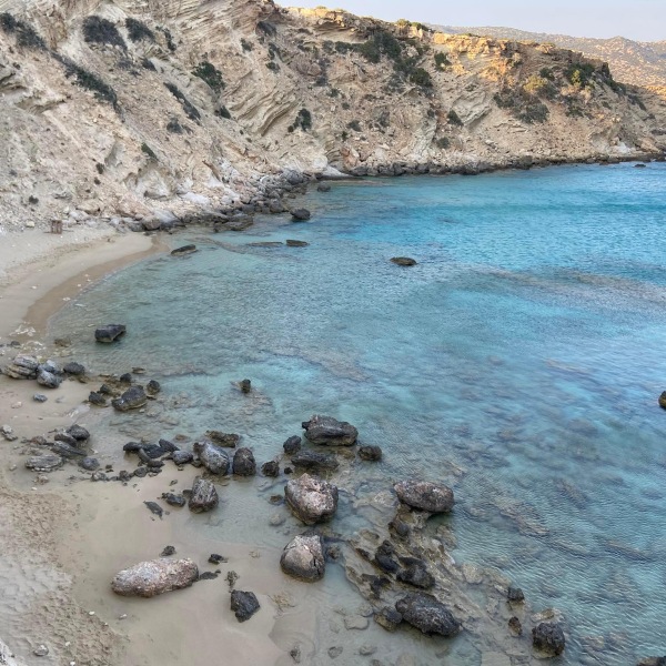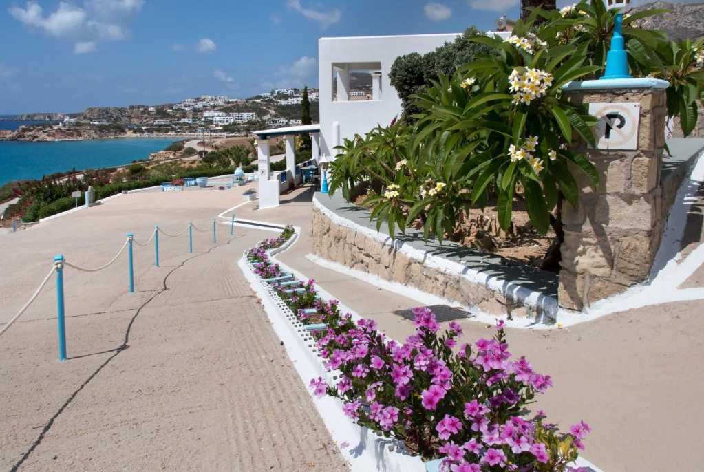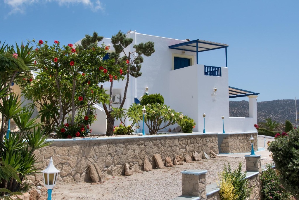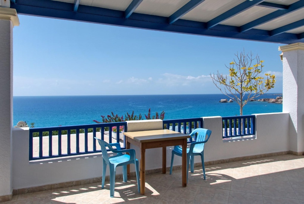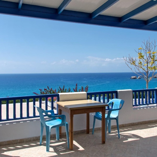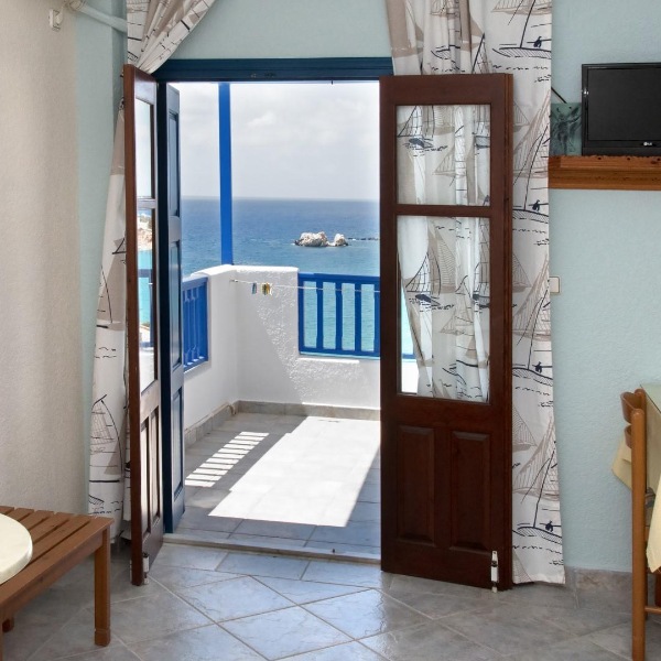 Lega: ob morju (na manjšem klifu), približno 20 m od prve (manjše) peščene plaže (dostop po stopnicah) in 250 m od plaže mali Amoopi, v kraju Amoopi, 7 km od mesta Pigadia in 7 km od letališča.
